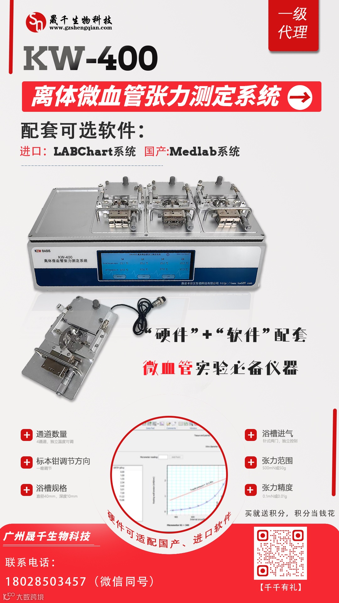 传统设备多聚焦于大中动脉,而KW-400系统可精确测量0.03~10mm范围内的血管张力变化,覆盖从毛细血管到主动脉的全维度血管研究需求。