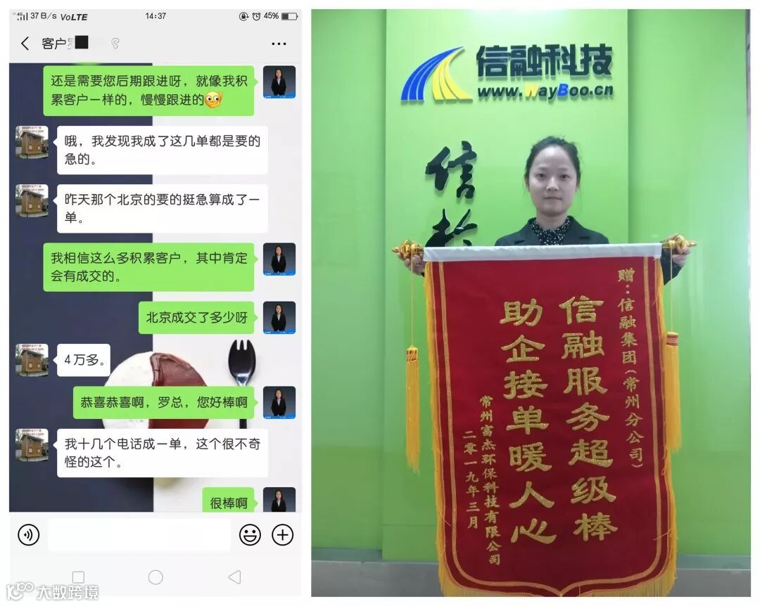 3月,罗总给我们送来了锦旗,罗总说:“跟你们合作的时候我就想,要是这个也没有效果,我以后就不做互联网了,没想到,信融流量宝果然没让我失望!”