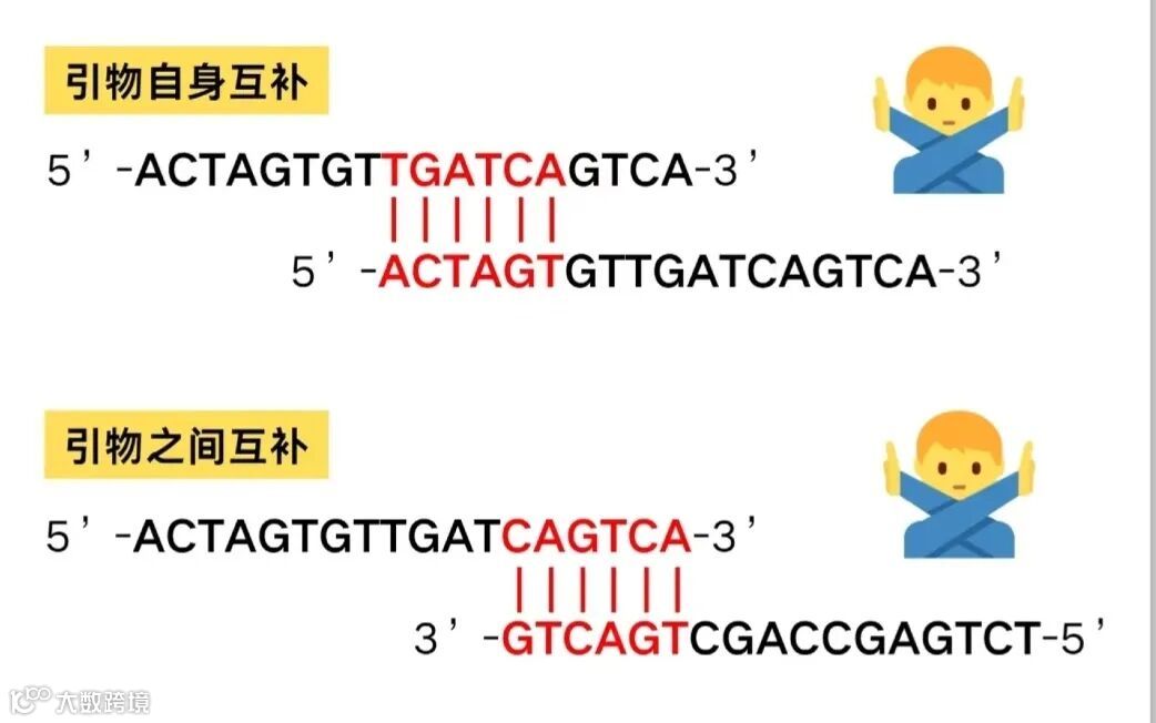 确保引物3’端避开密码子的第3位:引物的3’端应避开终止于密码子的第3位,因为密码子的第3位容易发生简并,这会对扩增的特异性和效率产生影响。