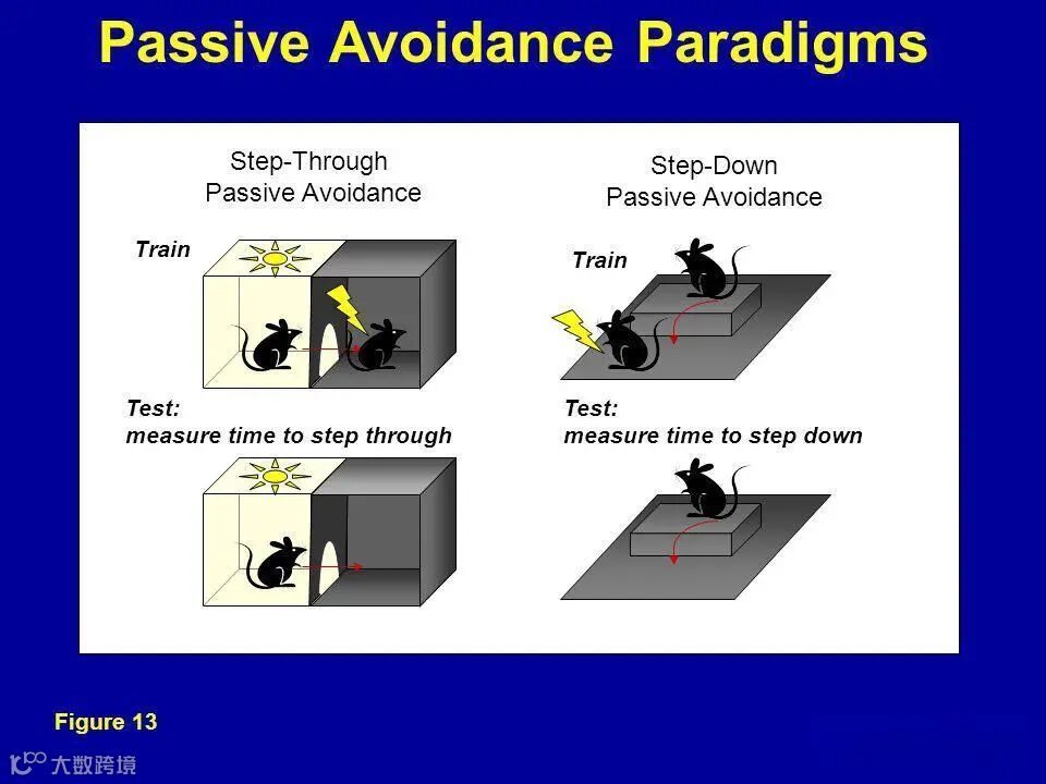动物在受到电击刺激后,会学习跳上平台以避免伤害。然而,通过训练,动物形成记忆,减少跳下平台的次数。同时,运用药物或脑损伤等因素可能影响记忆保持时间。