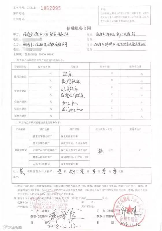 今年八月,我们联系到了谢总,针对南通利联设计的推广方案也成功获得了谢总的认可,顺利签单直通车产品10万元。另外,我们赠送了谢总2000次流量宝,希望他体验一下我们今年新产品的效果。