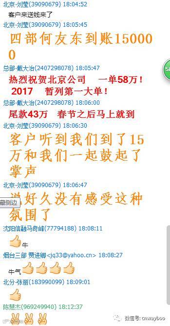 保定、石家庄、北京一分公司用了三周时间,依靠团队的职业化和拼搏精神已经提前完成了1月份的销售任务。刚刚在群里得到消息,长春公司顺利完成47万,超额2万完成1月目标,北京二分下午去收一个36800,明早8点客户来总部付款50000,这样北京二分顺利完成30万既定目标,济南公司下午收36800,距离30万仅差3000元,一定拼搏到底!