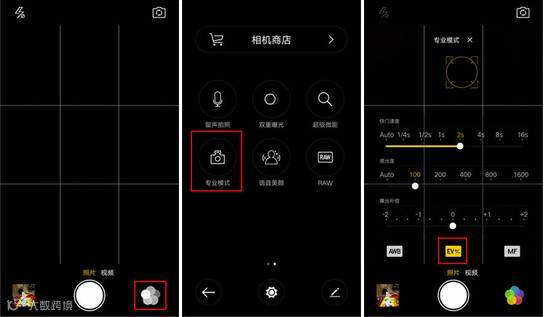 一,首先打开相机的左上角选择专业拍照模式,R7专业拍照模式可以设置多种参数如曝光补偿,ISO感光度,白平衡,快门速度及手动对焦等,专业性能媲美单反。在这里主要设置2个参数,第一是ISO感光度,一般设置100-400范围内,这样能有效的控制夜景噪点。第二就是快门速度了,如果想达到流光溢彩的效果,最少设置2秒以上,原理很简单相机通过放慢快门来记录车灯的运行轨迹,在曝光正常的情况下,时间越长轨迹就越漂亮。