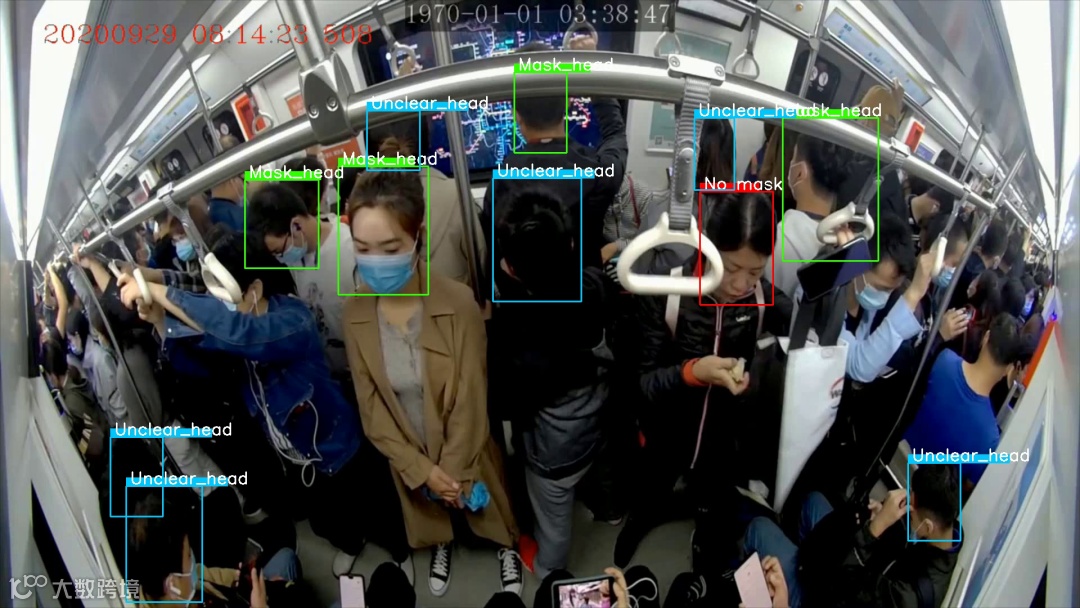 除此之外,地铁端也应做好相应的防疫措施。除了定期定时消毒外,还应在站台及车厢内配备相关的智能检测系统。通过图像识别技术在密集场景进行进一步的乘客目标检测,包括测温及乘客是否佩戴口罩等异常行为,以便在第一时间报警并进行安全处理。