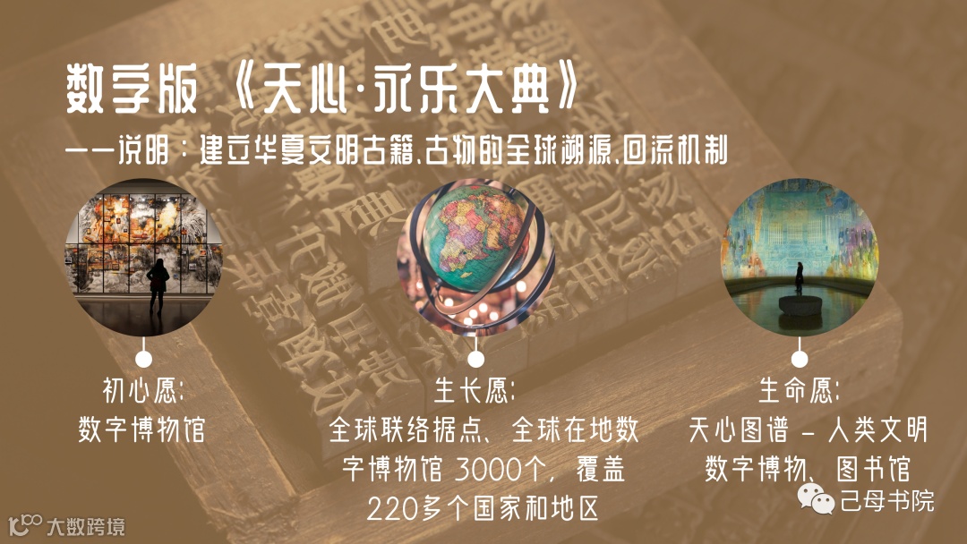 数字版《天心·永乐大典》人类文明智慧的收集与编纂,构建地球文明生命发展图谱,为后代开启研究宇宙自然规律、人类生命文明智慧发展新方向,提供脉络清晰的具有生命力、多元化的全息宇宙方案。