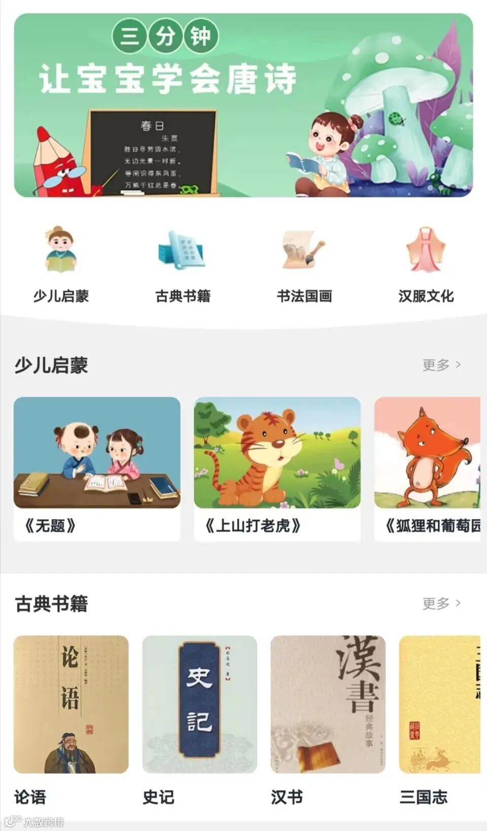 文化遗产不应该是贵族象牙塔里的一种玩赏,它应该是无所不在、生生不息的一种生活方式,文化是人为的,也是为人的,它不应该被尘封在历史深处,冷冷清清,它需要走入“寻常百姓家”,如此才能焕发出新的生机。和合共生的中国方案,以文明交流超越文明隔阂,中国文化有特殊生命力,不管到哪一代,中华文化总在。“知悟学习”目前共有“儿童启蒙”、“古典书籍”、“书法国画”以及“汉服文化”四大类共计上百种书籍,结合时代条件对中国传统文化加以继承和发扬,赋予中国传统文化新的涵义。