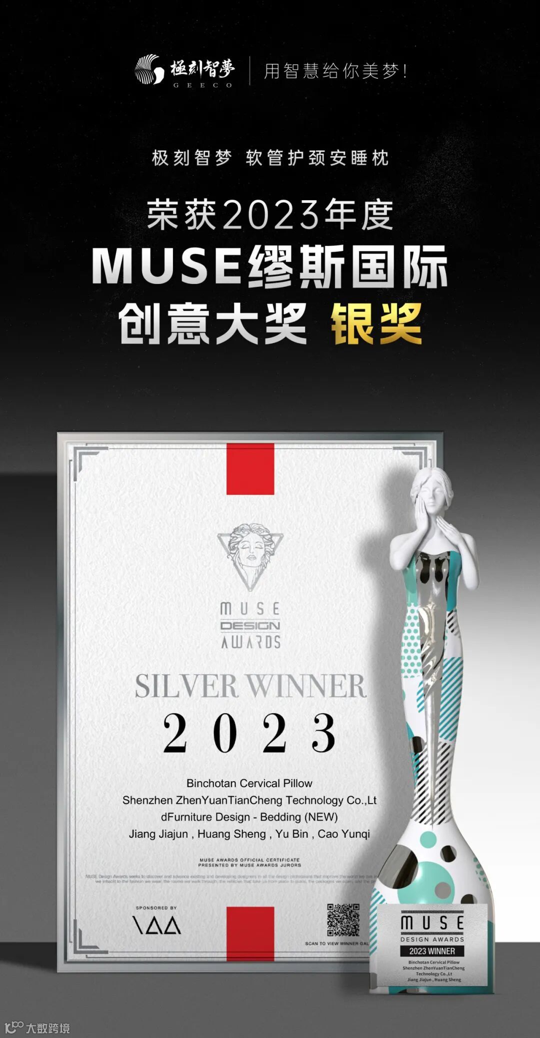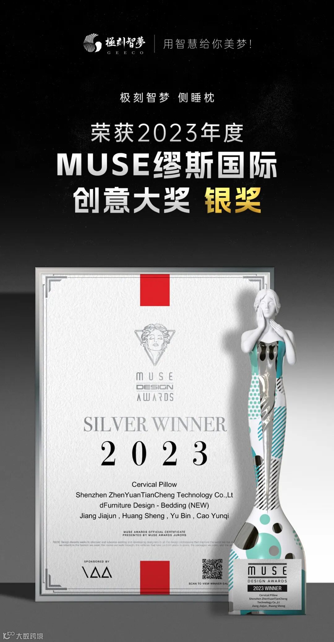 近日2023美国缪斯设计奖(MUSE Design Awards)获奖名单揭晓。极刻智梦3款产品,凭借独特新颖且兼顾睡眠科学的设计美学,与技术的创新突破,成功斩获2023年缪斯奖金奖(AI智能枕)、银奖(软管护颈安睡枕、侧睡枕)。