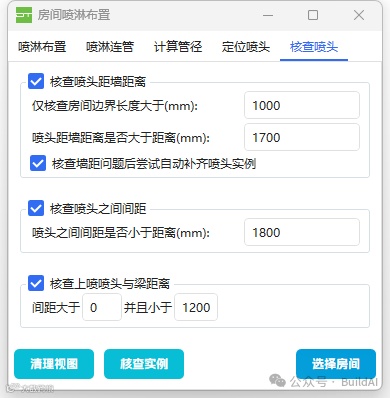 第二步:根据规范要求,自动核查喷头的间距和距墙距离,自动补放喷头。