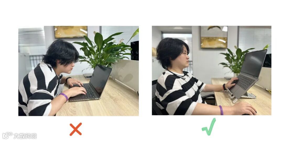 要把桌椅高度调到与自己身高比例合适的最佳状态,更重要的是腰部挺直,双肩自然后展,眼睛与桌面的距离约为35厘米。