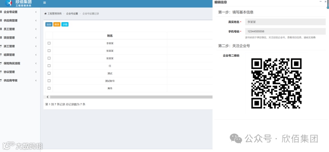 3、 审核通过,进入微信-通讯录-欣佰集团,点击“工程管理系统”进入