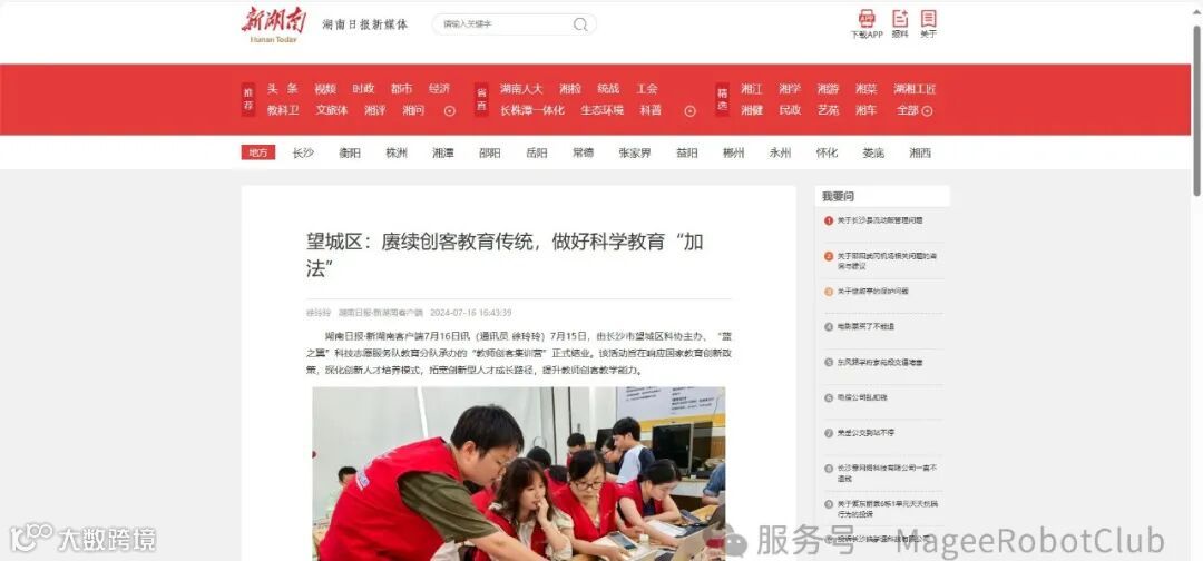 7月15日,由望城区科协主办、“蓝之翼”科技志愿服务教育分队承办的“教师创客集训营”圆满结业。活动通过专家讲座、实操演练、案例分析等形式,聚焦电子电路基础、Arduino编程、激光切割与3D打印编程等前沿科技领域,帮助参训教师掌握创新教学技能。集训营还设置“赛事与主题分析”专项培训,为教师指导学生参与科技竞赛奠定基础。参训教师表示,活动打破传统教学思维局限,推动创客教育理念与实践深度融合26。