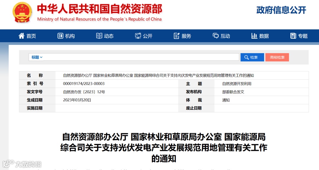 3月28日,自然资源部、国家林业和草原局办公室、国家能源局综合司印发《关于支持光伏发电产业发展规范用地管理有关工作的通知》。