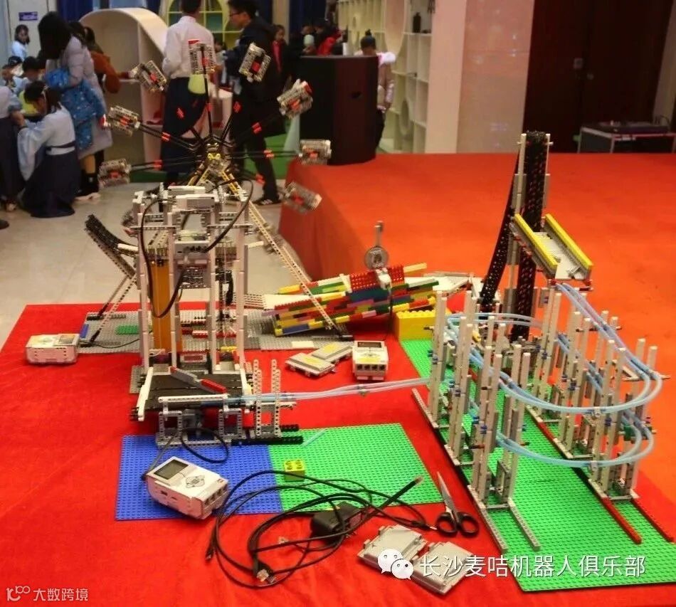 最后放上一张小黑老师和小九老师连夜搭建的大型EV3机关装置,是不是酷毙了!