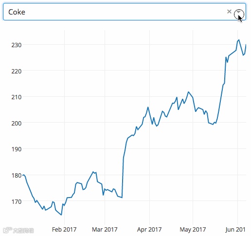 下面的例子展示了一个具有下拉功能的高度交互式图表。当用户在下拉菜单中选择一个值时,应用程序代码将动态地将数据从 Google Finance 导出到 panda DataFrame。源码在这里