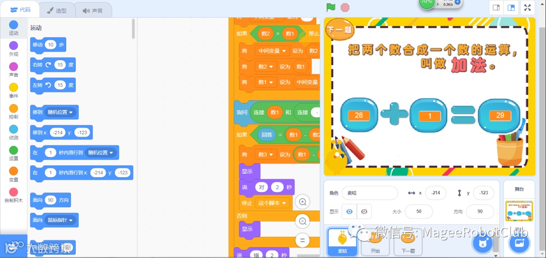 它是如何进行编程学习的呢?最主要的编程方法就是通过鼠标拖动模块,以事件驱动的形式来实现编程思想。也可以这么说,这种通过卡通表现形式,创造易懂的表现形式与氛围是有助于孩子接受,再结合寓教于乐的教学方法,事半功倍,让孩子可以在课程中收获更多编程基础与知识。
