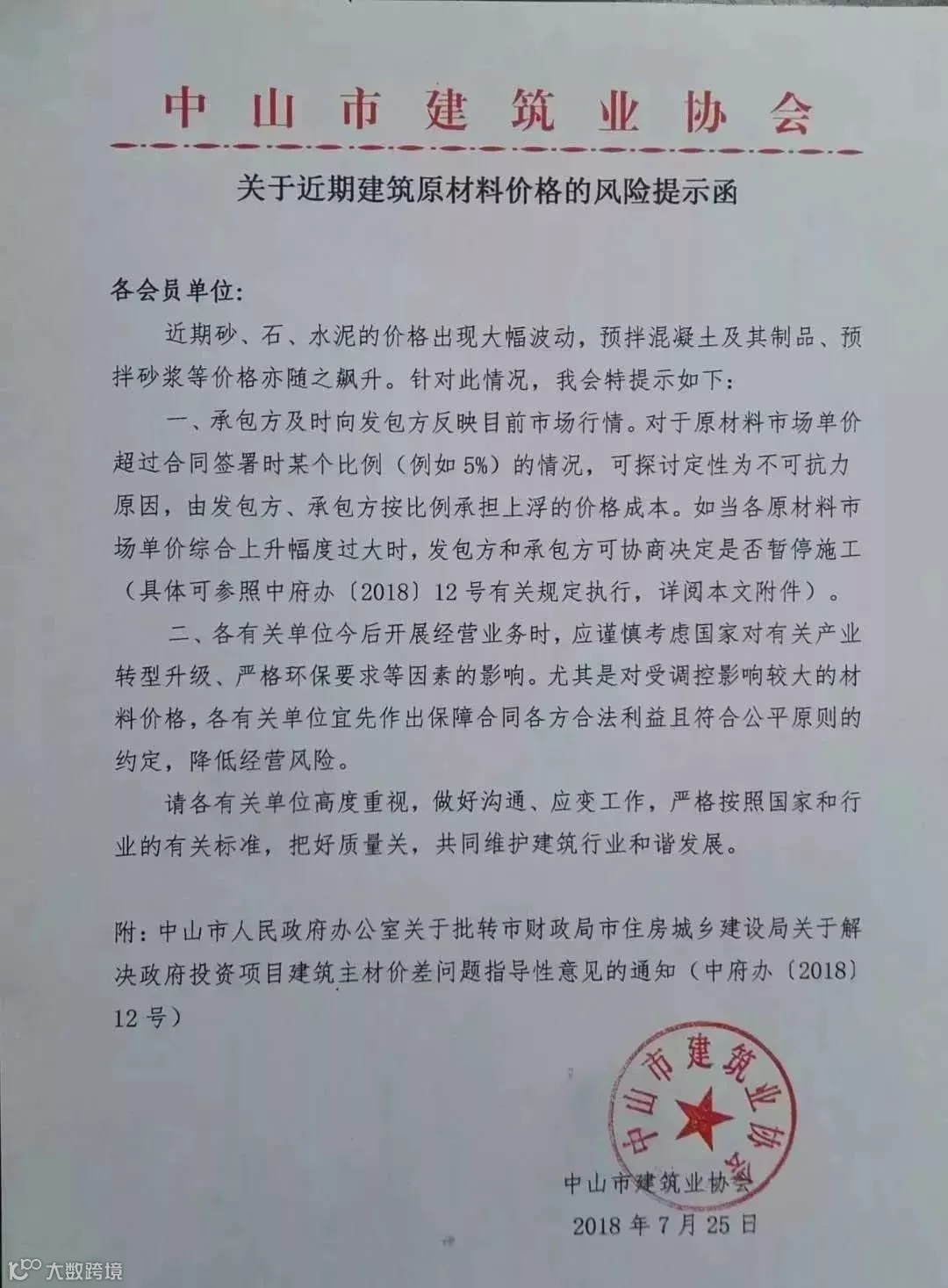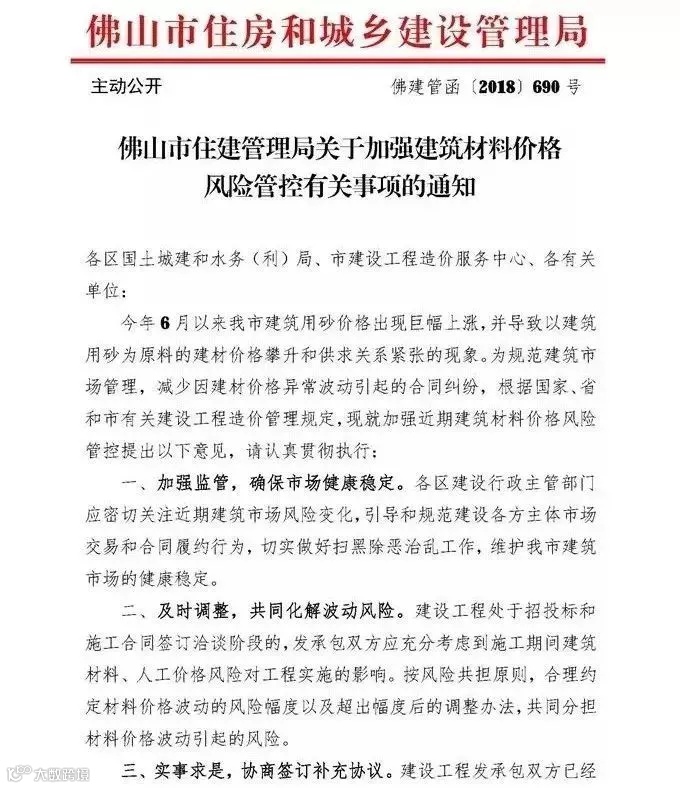 关于加强建筑材料价格风险管控的通知