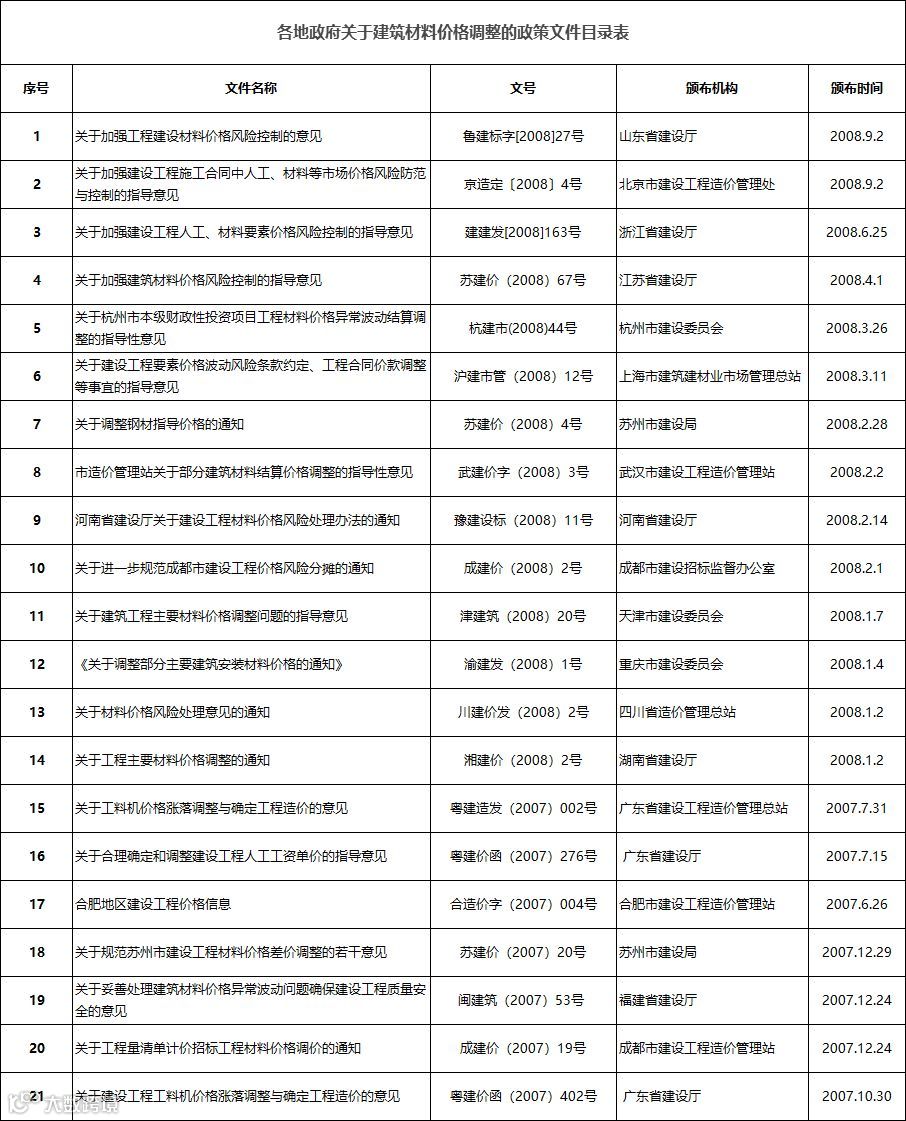 最近几年,多地也分别针对建筑材料价格上涨问题发文,要求切实维护施工企业权利。