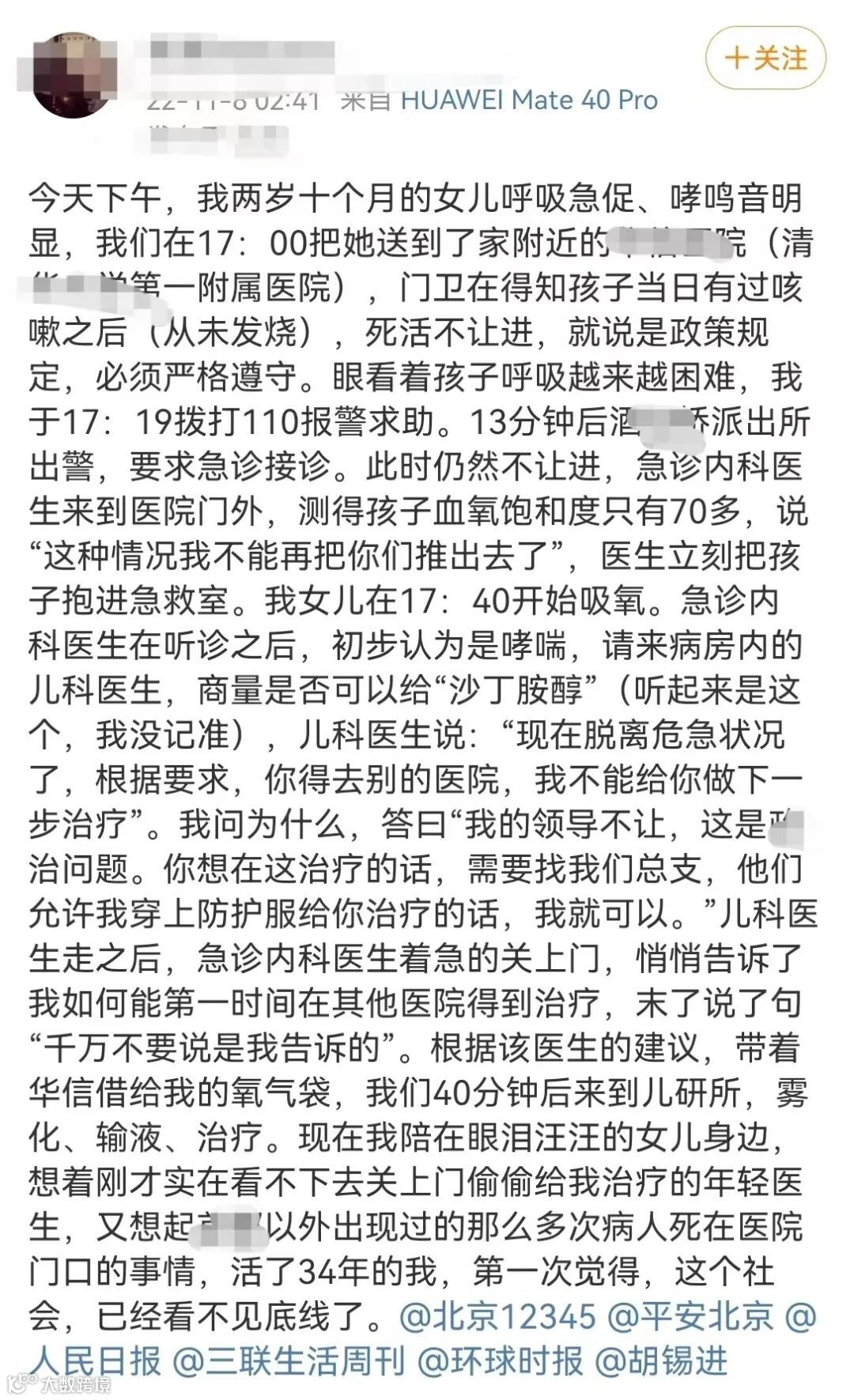 凌晨的时候,在昆山做修车铺的读友发来一则帖子,问我怎么看?事件并不新颖,给小孩看病,就医难的事情。为避免麻烦,事件的发生地涂掉了!