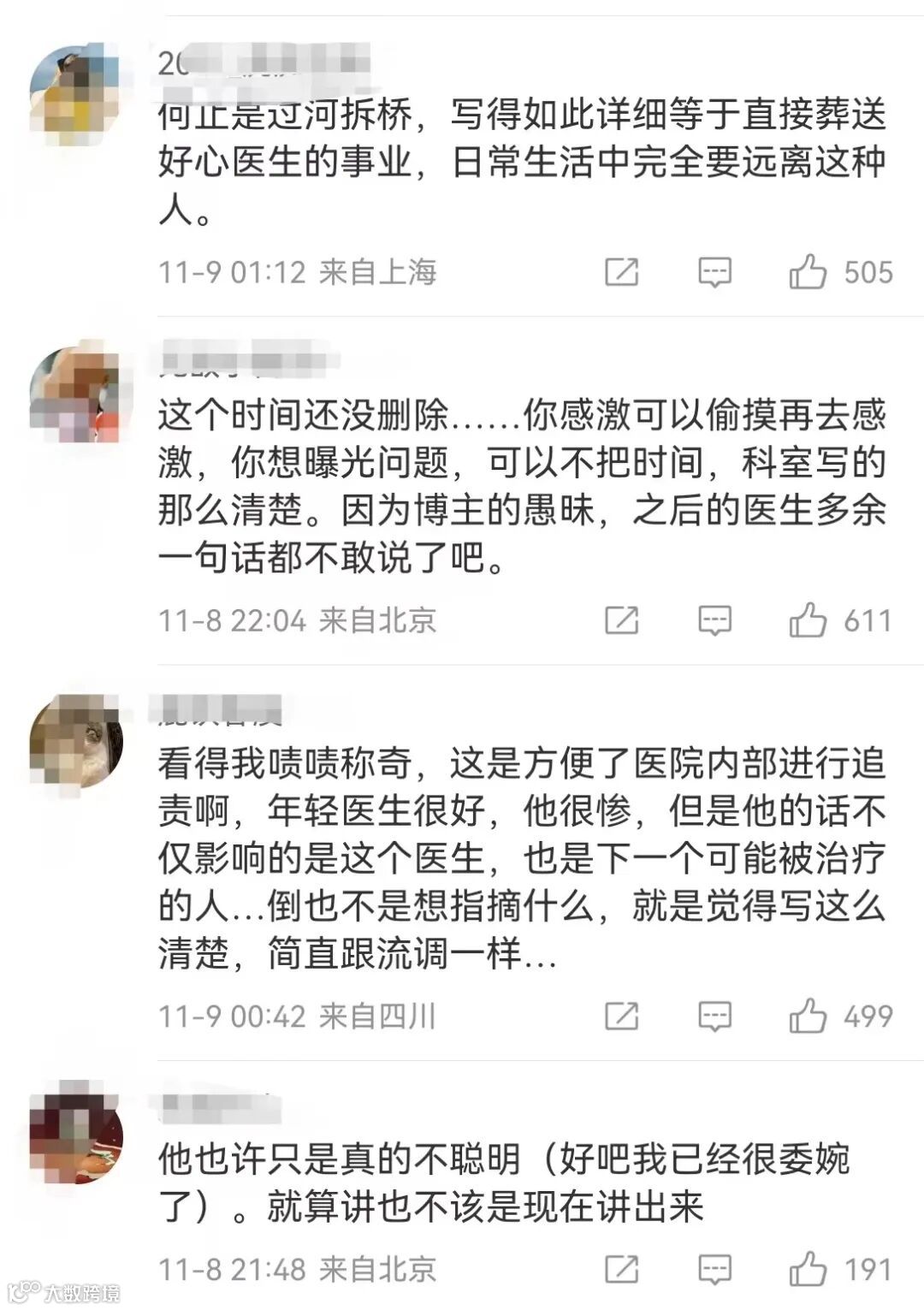 不过下面的评论,都是在斥责这个发帖人,为何要出卖那个好心提醒她的医生!