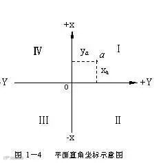 平面直角坐标:如坐标原点o是任意假定的,则为独立的平面直角坐标系。由于测量上所用的方向是从北方向(纵轴方向)起按顺时针方向以角度计值(象限也按顺时针编号)。因此,将数学上平面直角坐标系(角值从横轴正方向起按逆时针方向计值)的x 和 y轴互换后,数学上的三角函数计算公式可不加改变直接用于测量数据的计算。