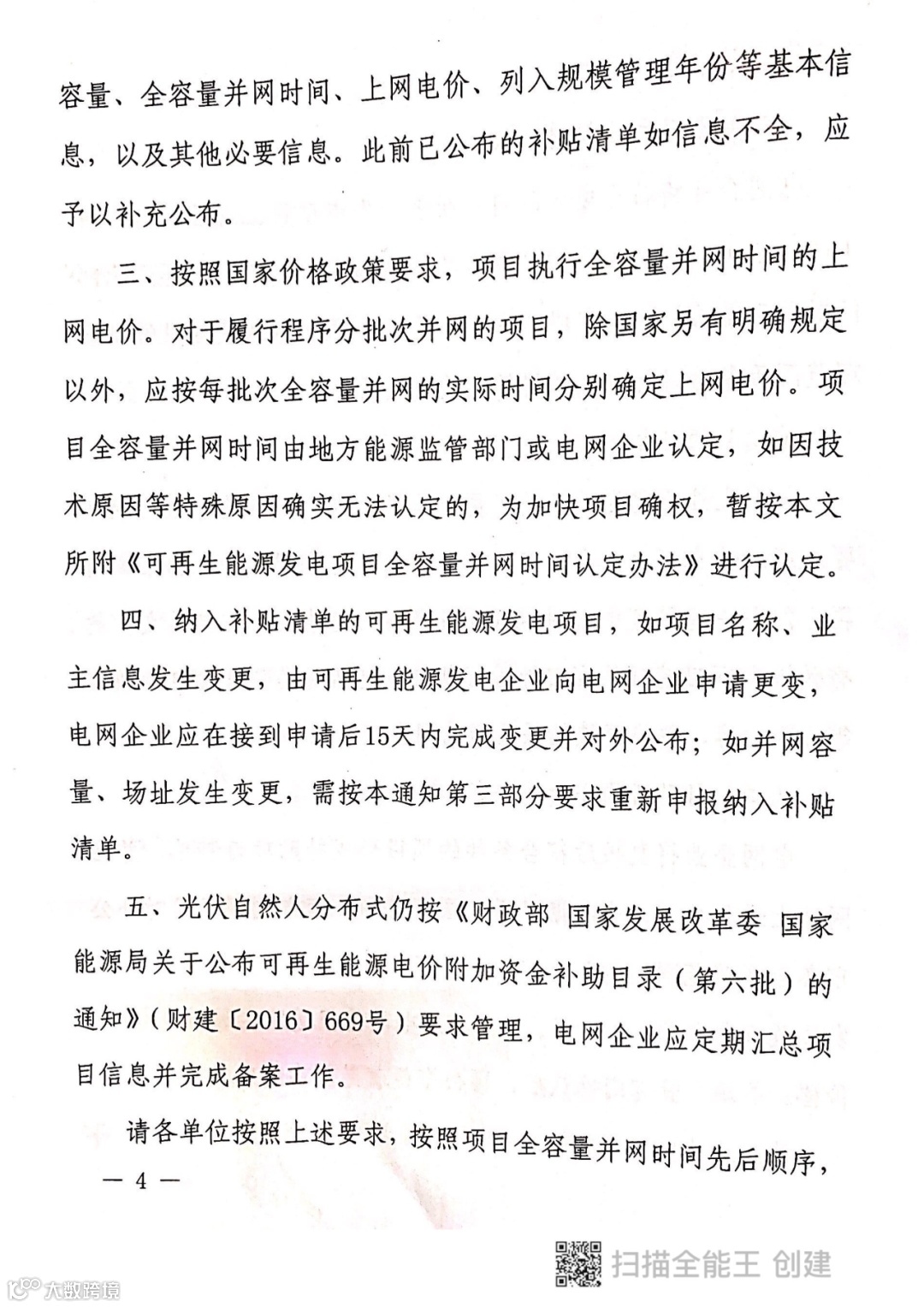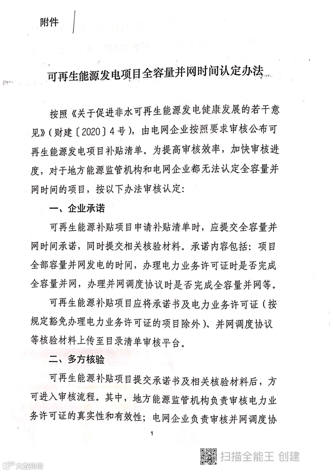 但需要注意的是,与该通知同步下发的还有《可再生能源发电项目全容量并网时间认定办法》。根据文件,项目执行全容量并网时间的上网电价——由地方能监部门与电网公司认定,分批次并网的应按每批次全容量并网的实际时间分别确认上网电价。