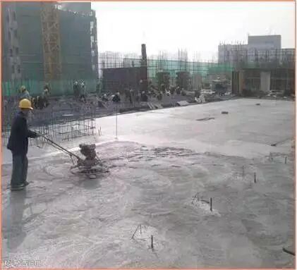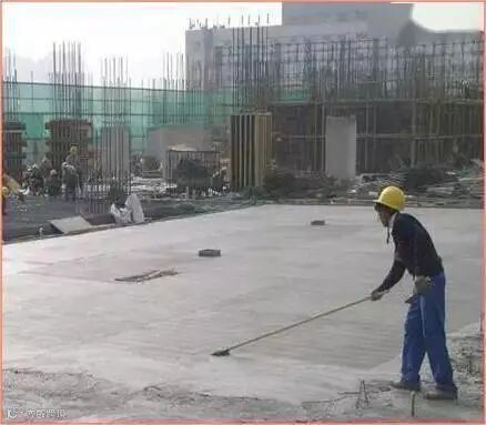 楼板混凝土浇筑:混凝土初凝前用2m刮杠沿四周墙的墙根处向中间刮平,再用压光机压实。终凝前用木摸子搓平,再用铁摸子压实2-3遍,表面塑料条帚扫毛。