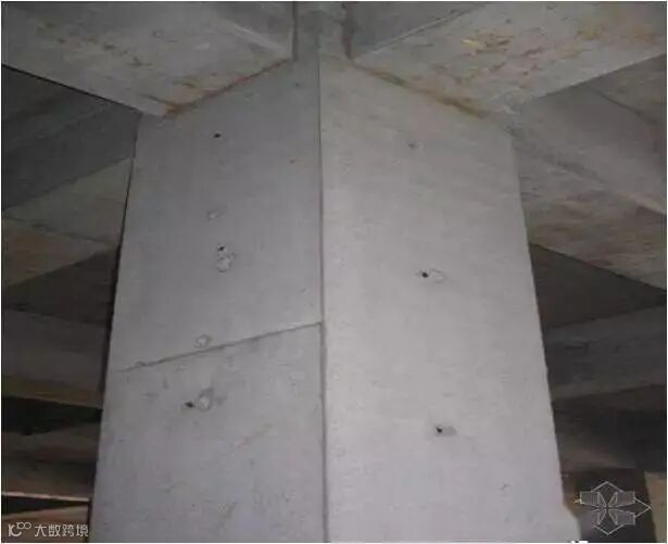 施工缝处理:墙、柱水平施工缝在墙、柱边线内再弹一道切割线,用无齿锯切割,切割深度3cm。柱、墙上顶水平施工缝按标高线往上5mm再弹一道切割线,进行切割。下图为框架柱柱头和柱根部处理