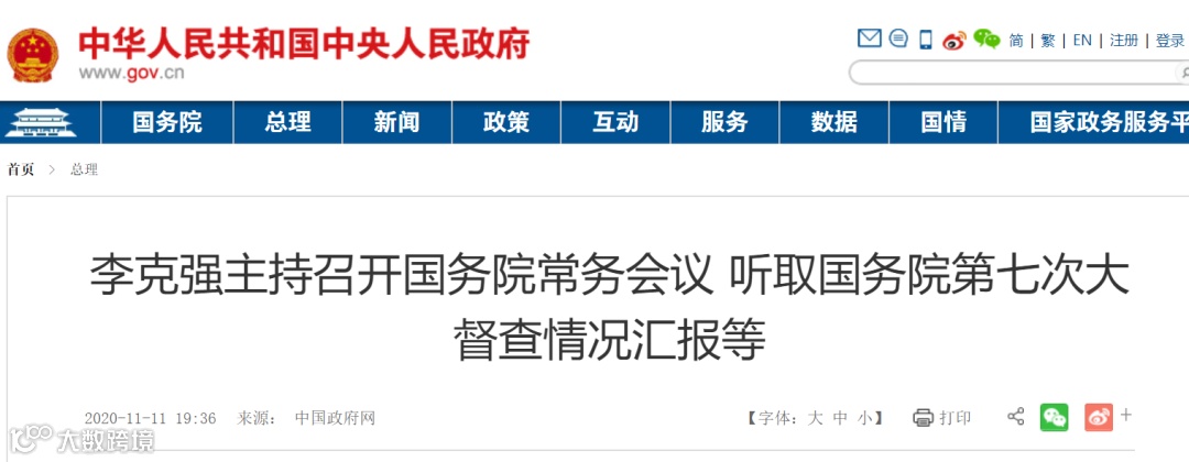 国务院总理李克强11月11日主持召开国务院常务会议,听取国务院第七次大督查情况汇报,确保政策落实,更好发挥促进经济稳定恢复的重要作用;决定在浦东新区开展市场准入“一业一证”试点,在全国大幅压减建设工程企业和测绘资质并加强监管,更大激发市场活力,为扩大消费和有效投资创造条件。