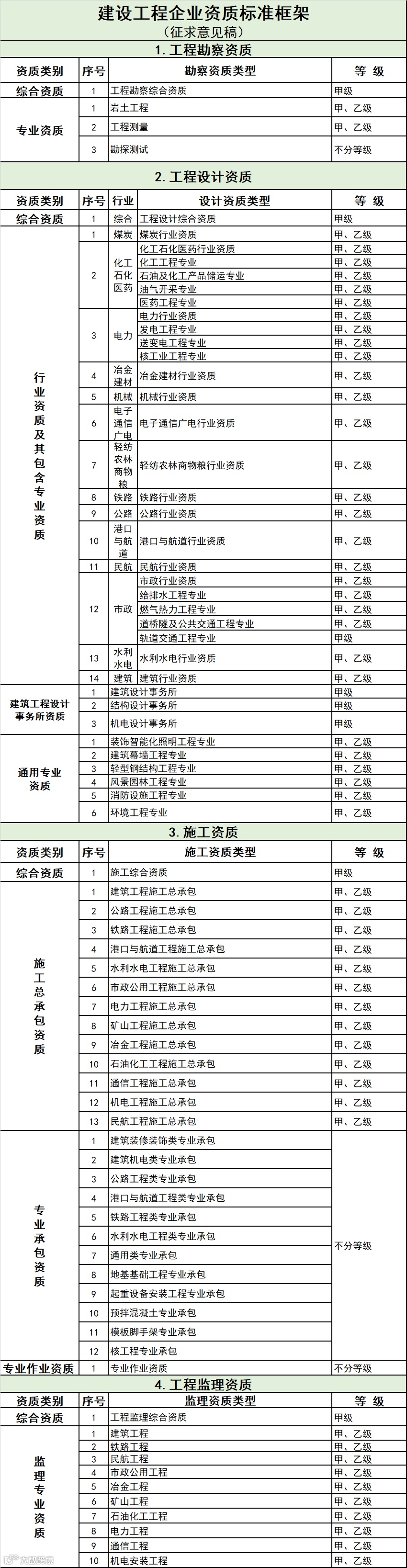 多种建筑资质面临取消、合并!最终自2020年7月2日住建部发布备受瞩目的《建设工程企业资质标准框架(征求意见稿)》将正式尘埃落定!