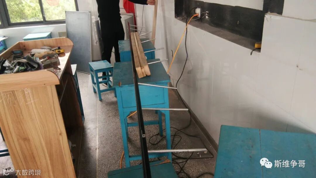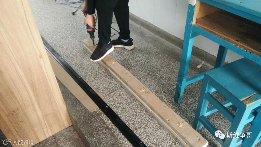 根据现场环境我们制定了一套安装方案、那就是在不影响美观度、安全性的前提下,采用穿墙固定法来进行安装。两位工程师接着跑到建材大市场购买所需材料、木方、穿墙螺丝等,回到现场后对材料进行一系列改造。