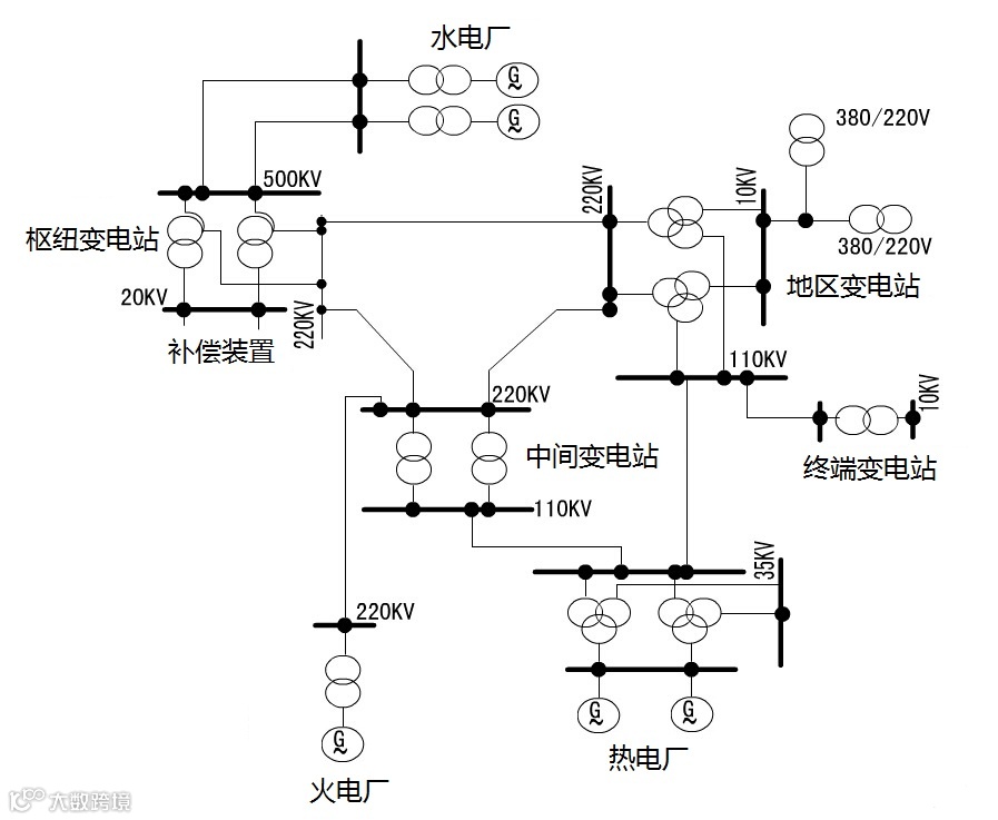 位于系统主干环行线路或系统主要干线的接口处,汇集2~3个电源和若干线路,高压侧以穿越功率为主,同时降压向地区用户供电。