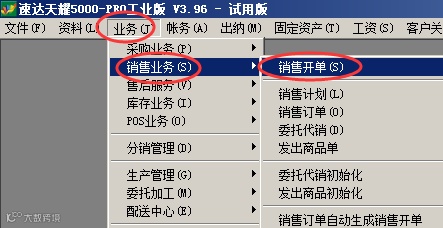 点击导航栏——业务(J)——销售业务(S)——销售开单(S)