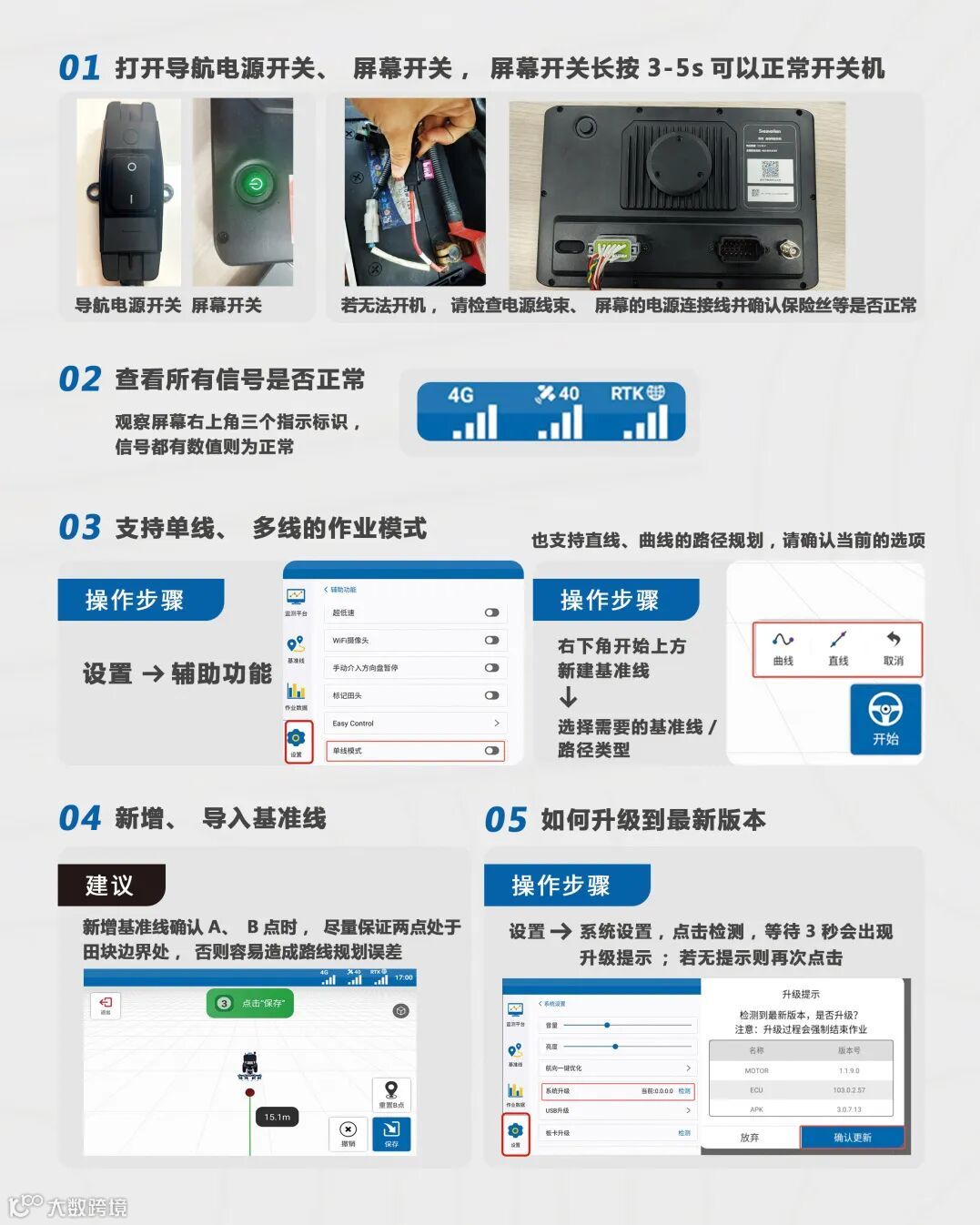 源自瑞典高端进口品牌,斯农导航开启2024春耕高效引擎!我们用心服务全体一线用户,用高品质的产品和周到专业的服务,为新农人的春耕作业保驾护航!用户在使用导航中的常见问题,我们也悉心整理汇总,为大家提供快捷的操作指导!