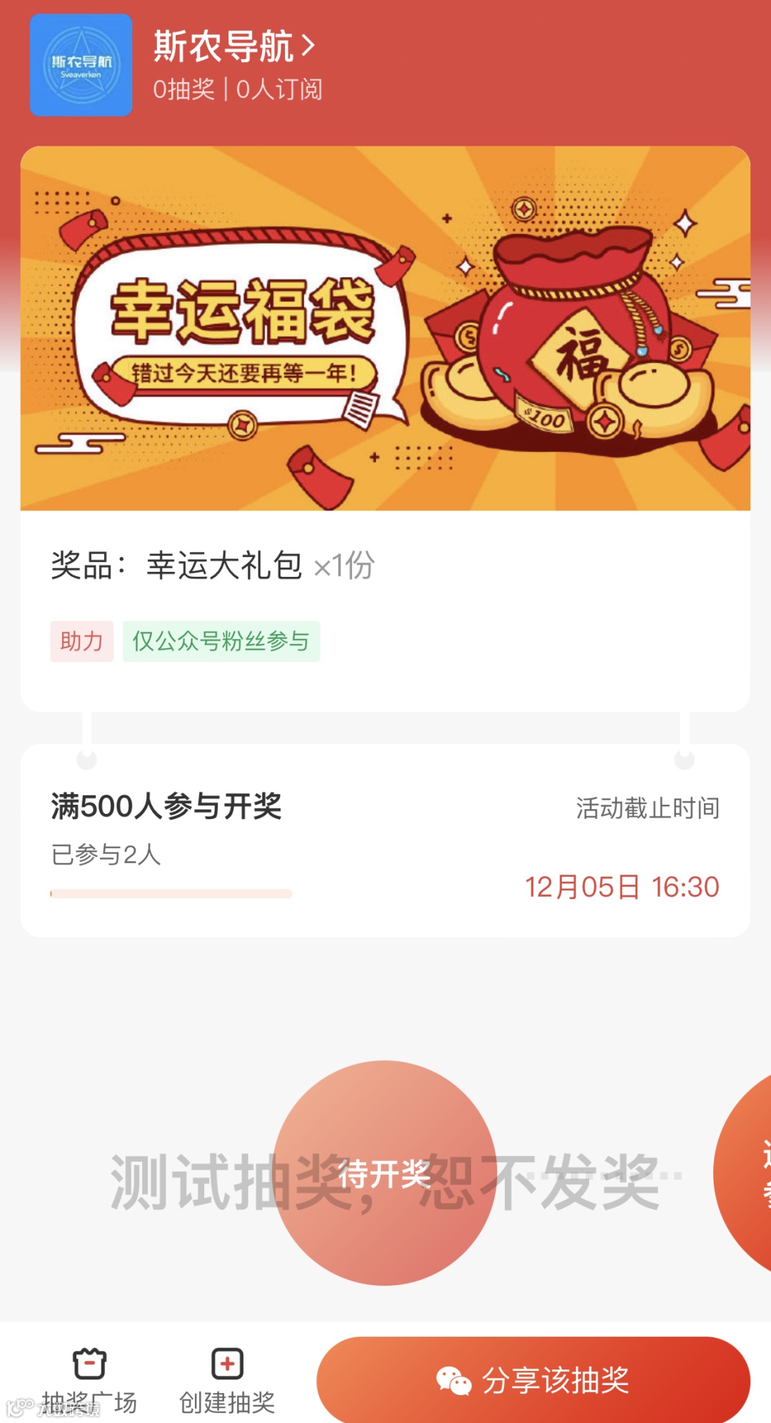 1、满500人参与即可开奖或者2022年12月5日16:30