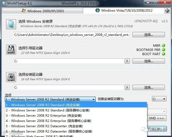 WinNTSetup不仅支持桌面操作系统安装、比如:Windows2000/XP/Vista/7/8/10,同时也支持服务器操作系统的安装、比如:Windows2003/2008/2012等。功能不俗!
