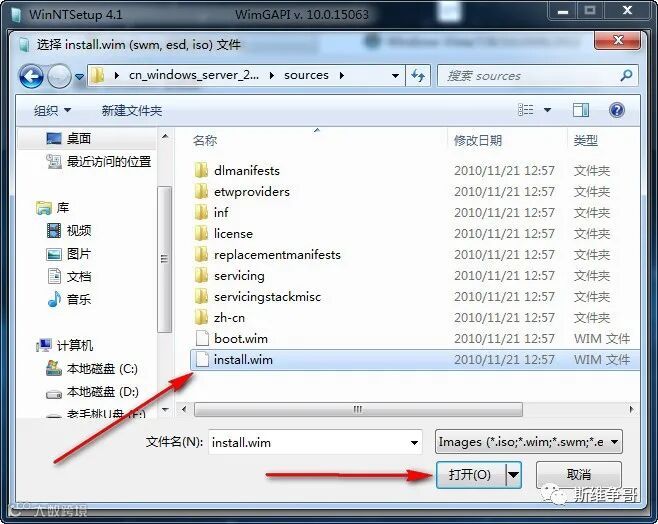 2、打开系统安装程序、进入主界面、选择Windows安装源-然后选择解压后的文件夹、找到安装文件并打开,如下图: