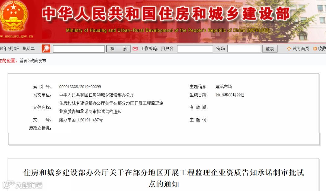一、自2019年10月1日起,试点地区建设工程企业申请房屋建筑工程监理甲级资质、市政公用工程监理甲级资质采用告知承诺制审批。
