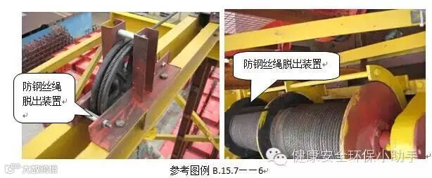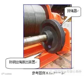 2、卷扬机应设置防止钢丝绳脱出卷筒的保护装置,该装置与卷筒外缘的间隙不应大于3mm,并应有足够的强度。(JGJ88-2010第5.1.6条)