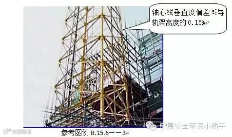 1、导轨架的轴心线对水平基准面的垂直度偏差不应大于导轨架高度的0.15%。(JGJ88-2010第9.1.7条第1款)