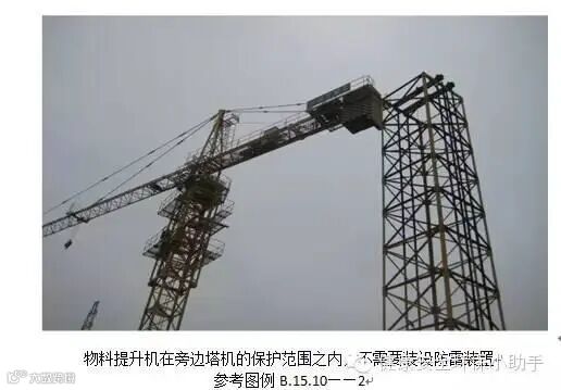 3、机械化设备上的避雷针(接闪器)长度应为1~2m。塔式起重机可不另设避雷针(接闪器)。(JGJ46-2005第5.4.4条)
