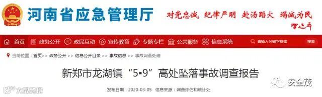 2019年5月9日13时45分左右,位于河南新郑市龙湖镇龙湖广场东南角的一栋村民在建违法建筑施工中发生一起高处坠落事故,造成 4人死亡、1人受伤,直接经济损失412.22万元。 近日河南省应急管理厅官方公布该起事故调查报告。