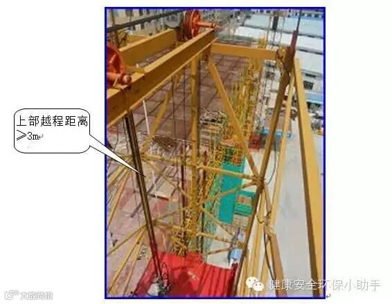 1、当吊笼上升至限定位置时,触发限位开关,吊笼被制停,上部越程距离不应小于3m。(JGJ88-2010第6.1.4条)