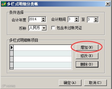 第一次打开多栏账需要增加科目(即设置需要查询的科目),操作步骤如下:
