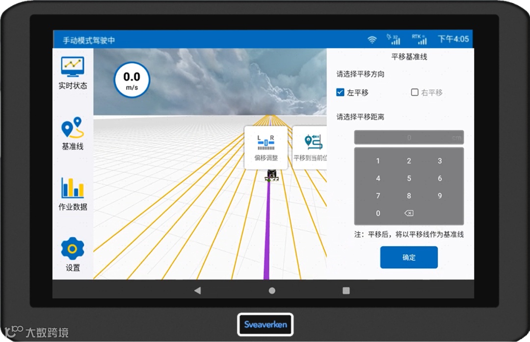 当作业时,因为地形或者机具原因,导致实际路径偏离基准线,只需要通过平移基准线,就能快速进入作业,提升效率。