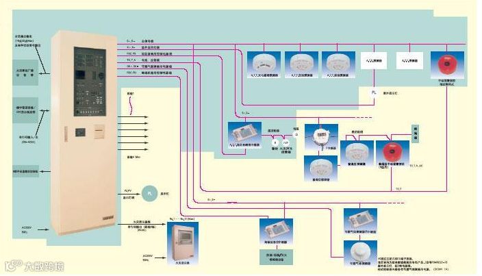 火灾自动报警及消防联动系统由火灾探测器、输入模块、报替控制器、联动控制器和控制模块等组成。主要功能为火灾参数的检测,火灾信息的处理与自动报警,消防设备联动与协调控制,消防系统的计算机管理等。