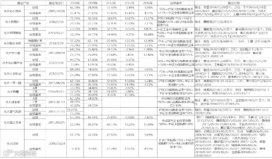 但另一方面,光大保德信在多项业务上的创新和进取也时常为人津津乐道。2004年公司成立后的首只公募产品——光大量化核心便首开先河,成为国内首只以量化投资为主策略的公募基金,该产品一直运作至今;2008年光大保德信成为业内较早拿到QDII资格的基金公司之一;2009年光大保德信四只“一对多”专户产品获得中国证监会的备案函,成为首批获批的“一对多”专户产品;2012年成立的光大添天利理财基金成为国内第一批短期理财基金产品,规模曾达数百亿之巨;而在刚刚过去的2020年,当市场热议“固收+”赛道时,光大保德信已在这一领域布下多只产品,规模一度超过230亿。①