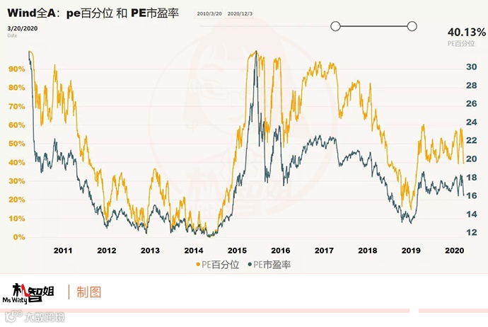 数据显示,截至3月20日,目前wind全A的市盈率约16倍,从过去十年维度来看,处于40.13%百分位,换言之,市场目前处于十年中位数以下。