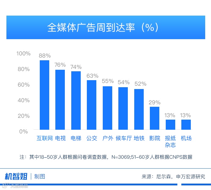 所谓用户画像,有时候画得也不一定准,效果一般,费用还高。广告主想了想,不如学学别人,多投投线下非数字广告,毕竟当下中国非数字广告渗透率仅仅26%,仍低于美国的51%(数据来源:申万宏源证券)。
