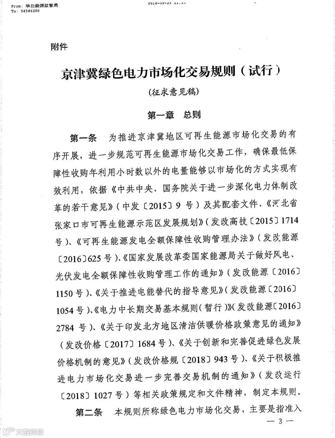 为加快京津冀可再生能源市场化交易机制建设,提升京津冀地区可再生能源消纳水平,促进张家口可再生能源示范区更好的发展,《京津冀绿色电力市场化交易规则(试行)》开始征求意见。