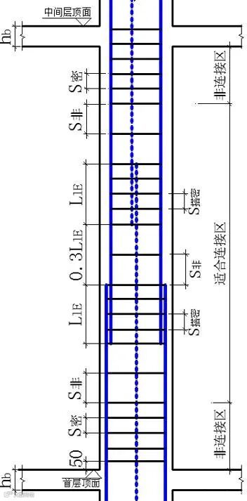 虽然按图集规定,柱子上下属于加密区,中间的连接区箍筋不加密,但在绑扎搭接时,其搭接位置,箍筋也是要加密的。